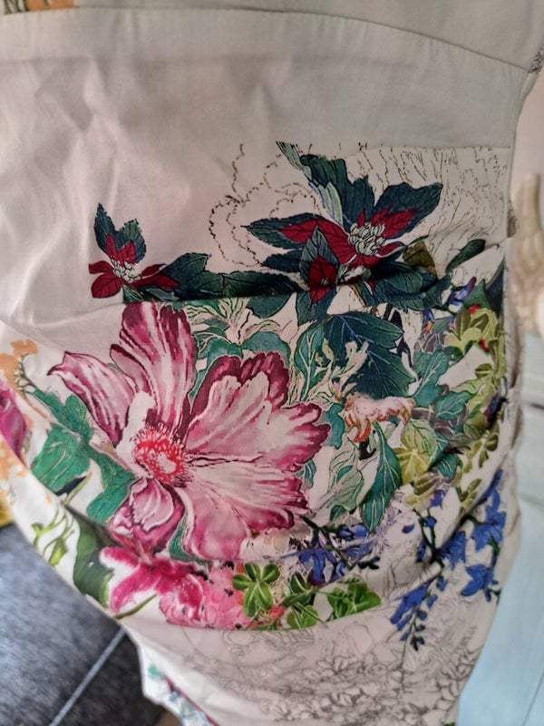 Mooi decadent tweedehands Phase Eight bloemenjurkje. Het jurkje is gevoerd, heeft plooitjes langs de zijkant voor een perfecte pasvorm en een decolleté met overslag. Het jurkje sluit met een rits op de rug.