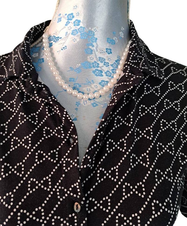 Hele leuke zwierige Juffrouw Jansen jurk in een leuk patroon. De jurk heeft knoopjes aan de voorzijde, lusjes voor een riempje ( niet bijgevoegd) en is gemaakt van een zware stof zodat de jurk mooi valt.