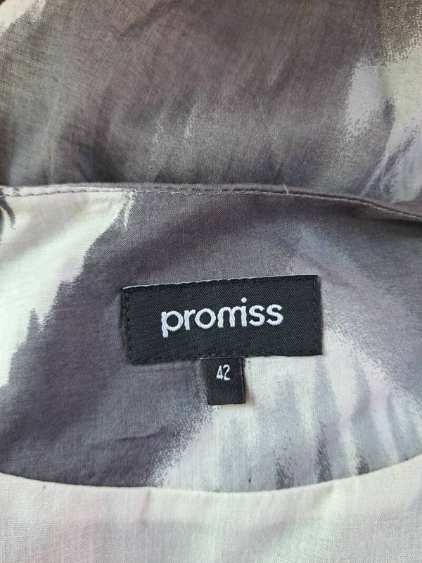 Mooi klassiek tweedehands Promiss jurkje dat altijd kan. Het jurkje heeft een mooi overslag decolleté, een striklint in de taille en de rok waaiert mooi uit. Het jurkje sluit met een rits aan de zijkant en is gevoerd.