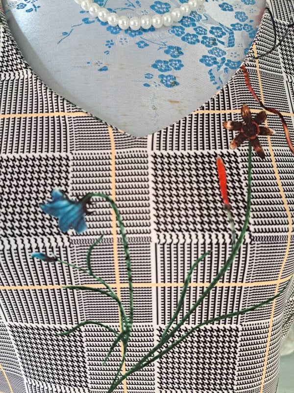 Leuk tweedehands Sweet Miss jurkje. Het jurkje heeft een retro patroon, sluit met een rits aan de zijkant en is niet gevoerd.