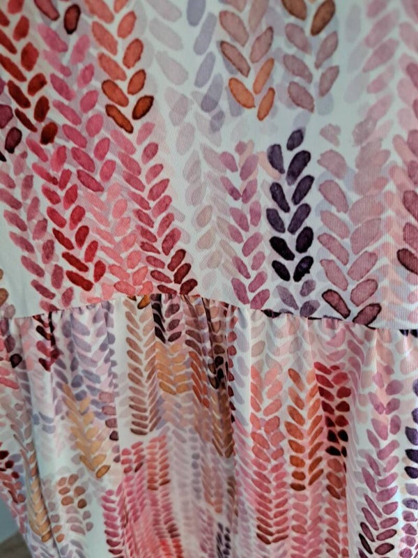 Super tweedehands K-design zomerjurkje in frisse kleuren. Het jurkje is gevoerd, heeft uitlopende mouwen en rokgedeelte en heeft lusjes voor een riempje ( niet inbegrepen). Het jurkje heeft Silverline fresh protection. D.w.z. dat er minder snel transpiratie geuren vrijkomen.