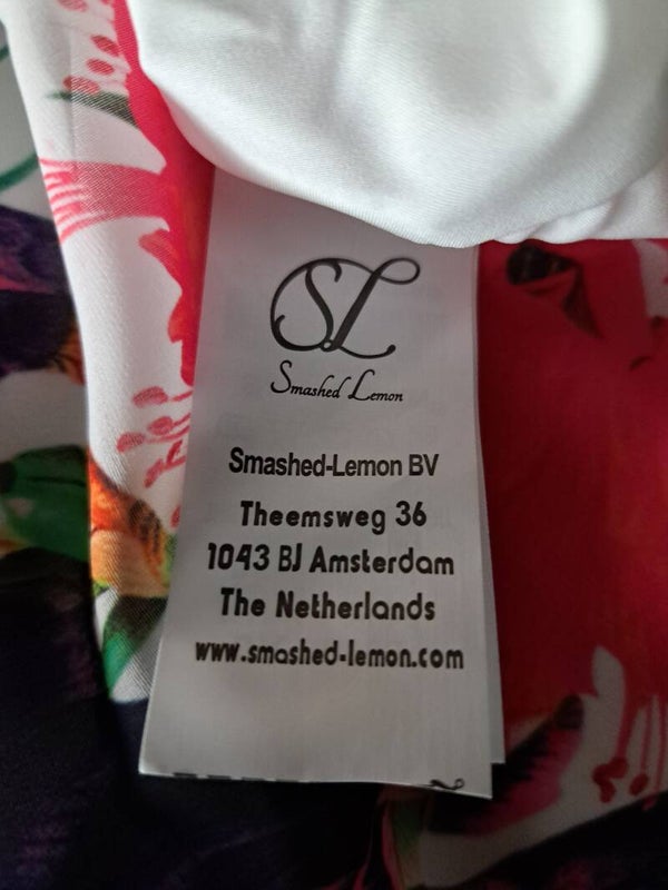 Fleurige tweedehands Smashed Lemon maxi bloemenjurk. De jurk is gevoerd, heeft een lint in de taille en rushes aan hals, mouwen en rokgedeelte. Er staat geen maat meer in de jurk, draagt als 44. Let op onderstaande afmetingen!